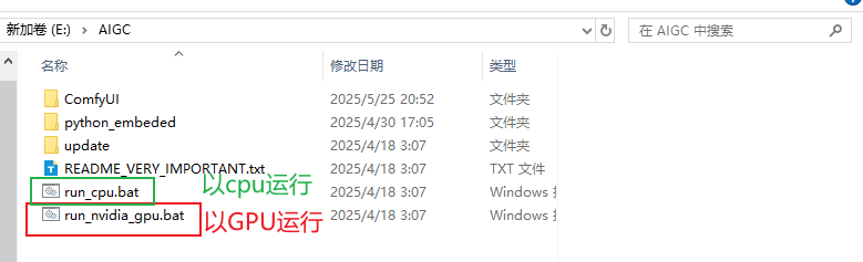 下载能完成后,放置一个文件夹,最好不要有中文名称路径。然后用7-Zip解压。可以重命名文件夹名称。然后点击这两个中的一个,但有显卡的话最好还是以GPU运行,没显卡就只能以cpu运行了。