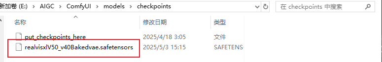 初始的整合包还没有放模型。大家可到模型站点如 civitai、liblib、hugginface、魔搭社区下载相应的 Checkpoint大模型,将其放入ComfyUI/models/checkpoints 文件夹