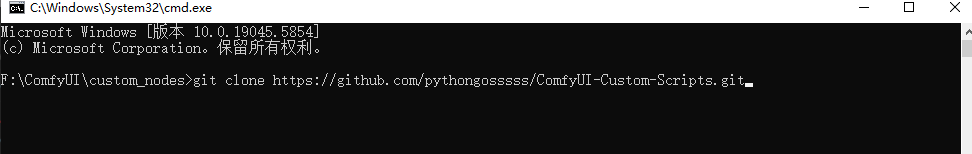 custom_nodes 目录,并打开cmdgit clone https://github.com/pythongosssss/ComfyUI-Custom-Scripts.git