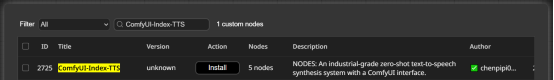 通过manager搜索 ComfyUI-Index-TTS下载即可。
