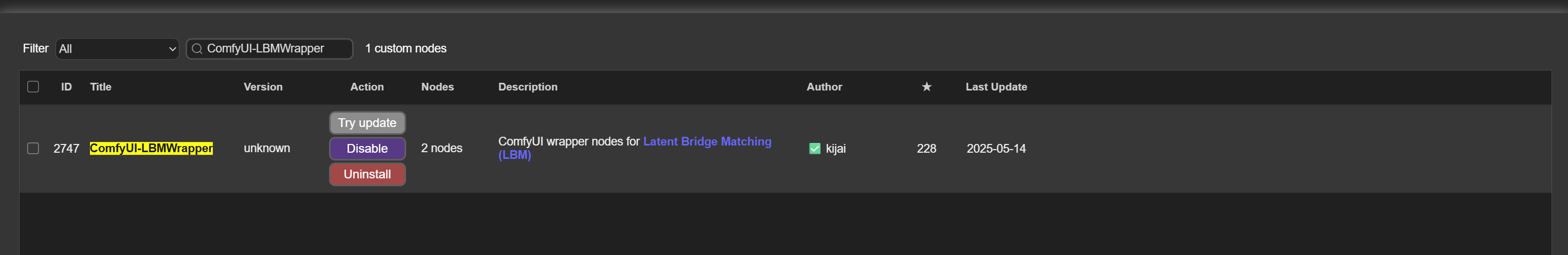 通过manager搜索ComfyUI-LBMWrapper安装。