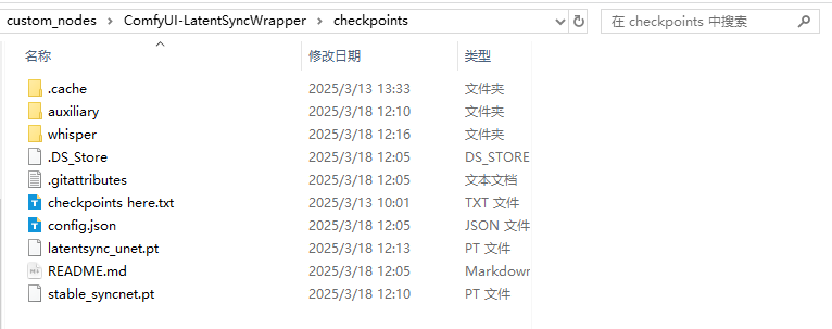 模型下载地址:点击跳转,全部下载放到custom_nodes\ComfyUI-LatentSyncWrapper\checkpoints文件夹,注意是插件的checkpoints文件夹,不是ComfyUI模型的。