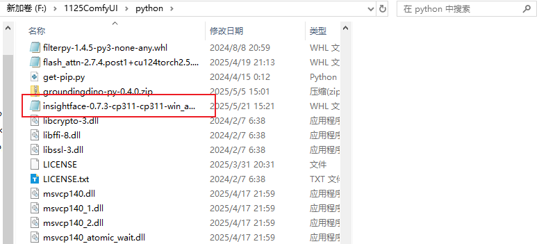 - 下载适用于 Python 3.10或Python 3.11(如果在上一步中看到 3.11)或Python 3.12(如果在上一步中看到 3.12)的预构建 Insightface 包,可以直接放到ComfyUI的内置python目录