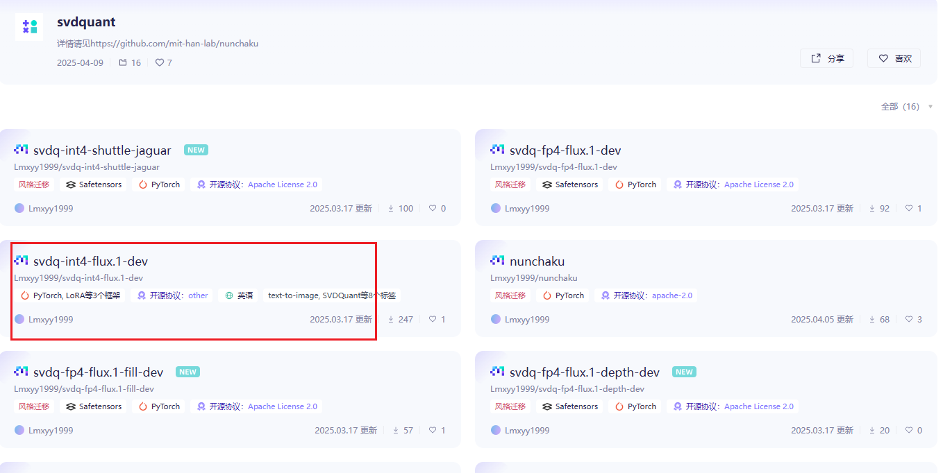 - 进入模型页面后,以上面红框内模型为例,其他模型的下载也是一样。该模型需要放置在