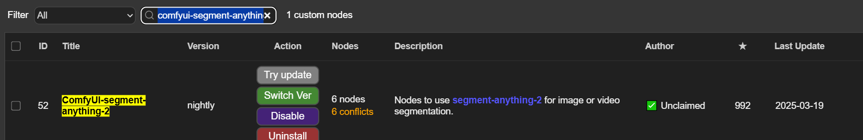 通过manager搜索comfyui-segment-anything-2安装。